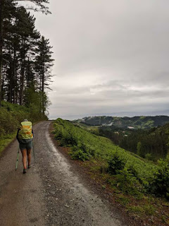 It was basically climb after climb, eventually we got to a small town of Ibiri and were told that it was one of the last places with services (water, food, bathrooms) for about 17km, besides a small spring to drink from about halfway in Arnoate. We took in the last bits of civilization before being out alone for several hours and continued on. As I mentioned before, we were traveling SLOW, my knee was acting up and so was my achilles. Uphill was absolutely no problem, but downhill with absolute misery. I even contemplated throwing or rolling my pack down the hill and rolling after it a few times.