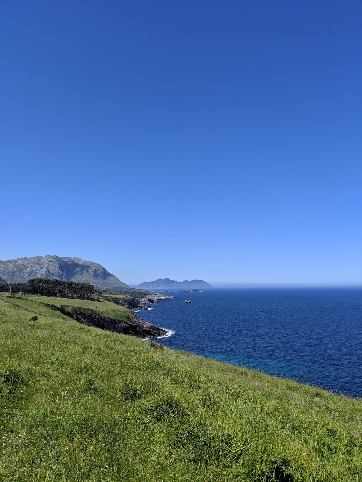 The last part of the hike to Islares was all grass (yay for my feet) and ocean cliffs, blue sky, and hot sun. The weather has finally gotten warmer and will probably stay that way for the rest of our trip. It is nice, but not when you’re hiking the heat of the day trying to get to the next town so you have a bed! Luckily, Scott texted me when he arrived, just 15 minutes before me, and he secured a tent with three other lovely women we know.
