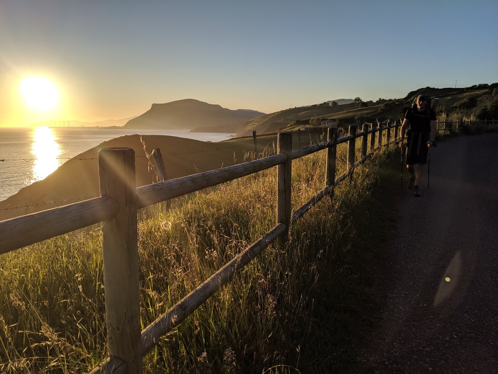 Anyways, we had an interesting day today! We woke up early and got to catch the sunrise as we were hiking up to the top of some coastal cliffs. It was probably the most picturesque walk we’ve had this whole trip. I thought the whole Camino was going to be like today’s walk, but the ugly industrial days mixed with beautiful beach days make them a little bit more appreciated. There was lots of rolling hills with farmland right up to the edge of rock beaches with sheep, horses, and cows. All who probably had the best view out of anyone.