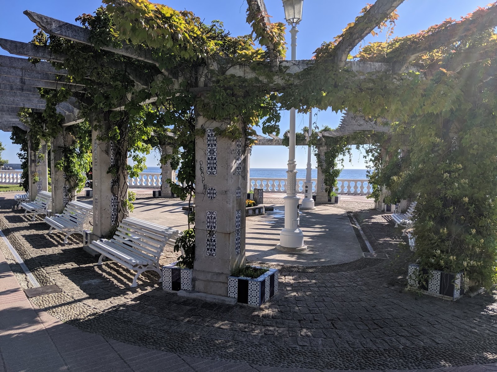 The town we were headed to wasn’t too far away, but it was absolutely beautiful looking down at it from atop the sea cliffs. We decided it was best to stay somewhere a little bit closer because it was cheap and had a lot of amenities. What I liked most as we started walking along the beach of Castro-Urdiales was that they had ornate benches and planters with intricate tile pictures all along the walkway. I also really liked that the distance was short to the albergue, it was on the beach, and we got a donut on the way.