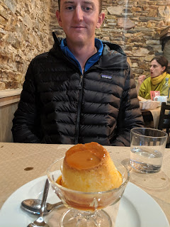 Since this is our indulging day we went out to dinner. There is a place just across the street from our hotel that looked like it had a decent menu with prices we could afford. All of the restaurants around here have pictures of octopus and squids so we thought we should probably try some. As I mentioned previously, most places in Spain take a seista and then open later, so we had to wait until 8 for dinner. It wasn’t too big of deal since we had been taking it easy all day anyways. We ordered Chorizo and potatoes, fried calamari, and flan. Everything was delicious. The restaurant must be popular because by the time we left all the tables were full, and we could definitely understand why.