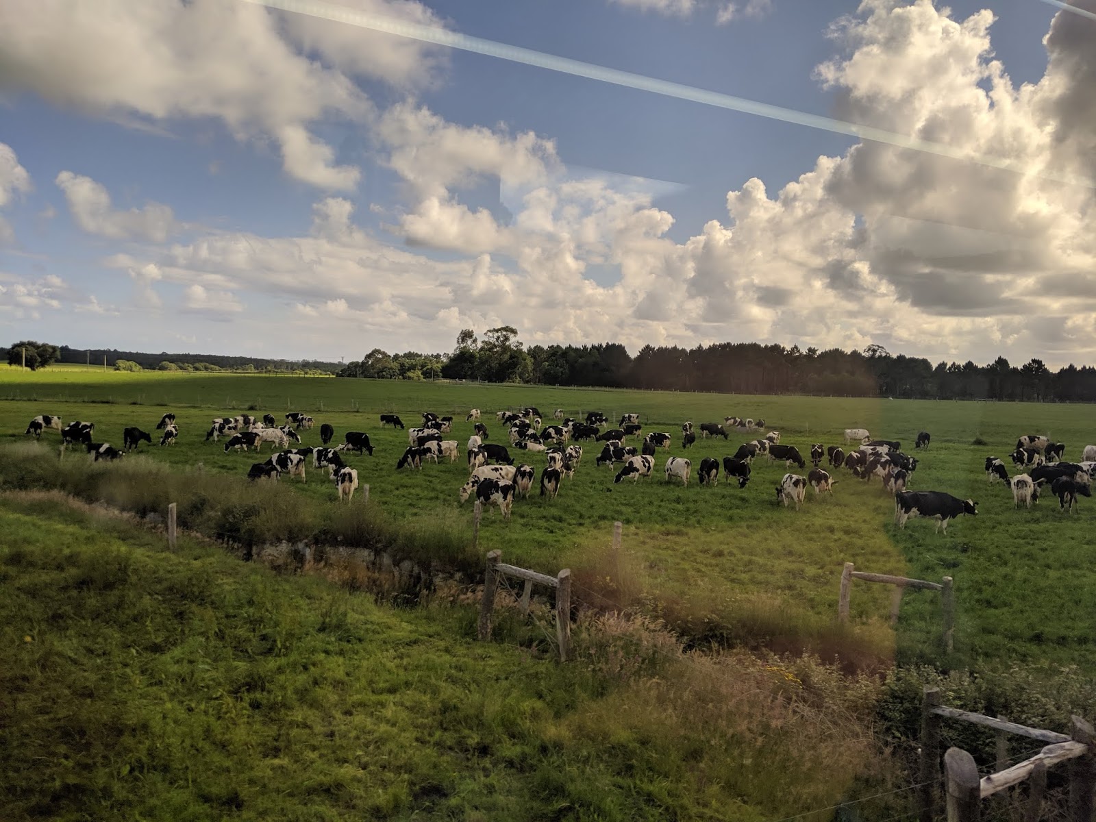 Since we were in a rural town, there was no ticket office, just two tracks and a sign. We were trying to figure out which side of the tracks the train was going to pick us up on to avoid having to run around to the other side. This was a good thirty minute debate and after arguing for a while we came to terms with which side made the most sense, and we (I) was right! The train was made up of just two cars, the seats were much more luxurious than I imagined and it was very quiet inside. Few local people got on and off, we saw quite a few pilgrims though.