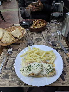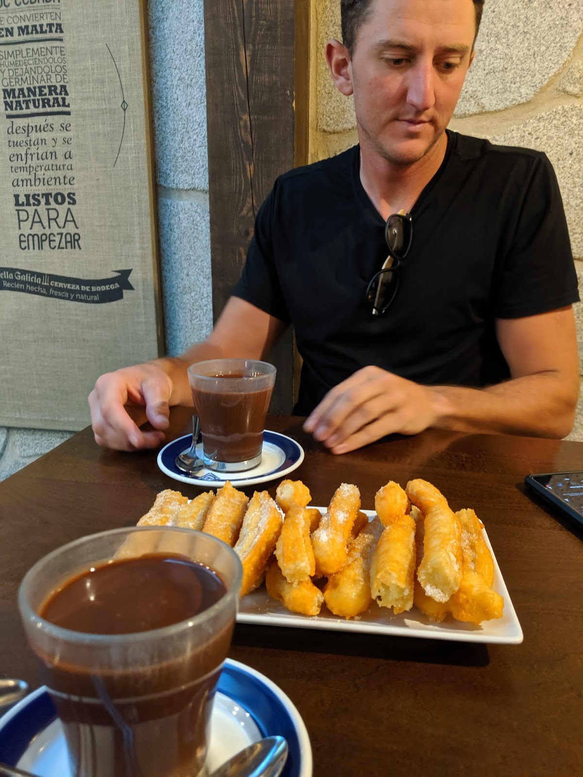 Our first stop when we got into town was churros. They had a place just a minute away from our Albergue… destiny I call it. Let me tell you, Scott and I both agreed that these were THE best churros and chocolate we have had the entire trip. No doubt about it. Definitely made up for the terrible ones from yesterday. I even gave wine a chance again at dinner tonight and it was a very pleasant surprise.