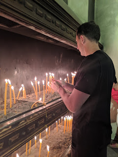 After Risan, we headed to the town of Kotor, just a short drive away. Scott has family that migrated from both Risan and Kotor. On the way to Kotor we saw two islands in the middle of Boca Bay. One, which is manmade, and another with just a church. Our host told us that every year in August people come to put a rock on the man-made island to help it grow. Something unique for sure! Kotor was another town we really enjoyed, it was the same idea as Dubrovnik, a city within castle walls, but much less crowded. It was nice to walk through the maze of alley ways, shops, and restaurants to find small gifts for our families. We also visited a beautiful church where Scott lit a candle for his Baba, a very sweet moment.
