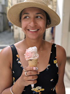 Near the port of Split there is a beautiful open area with benches, flower gardens, palm trees all looking out at the sea. So, we thought, 10am isn’t too early for a gelato and proceeded to munch on gelato and look out at the boats coming in and out of the port. Our air bnb was luckily ready at noon so we headed there for a much-needed nap and recovery from our all-night travels from Greece.