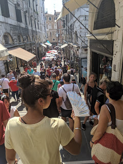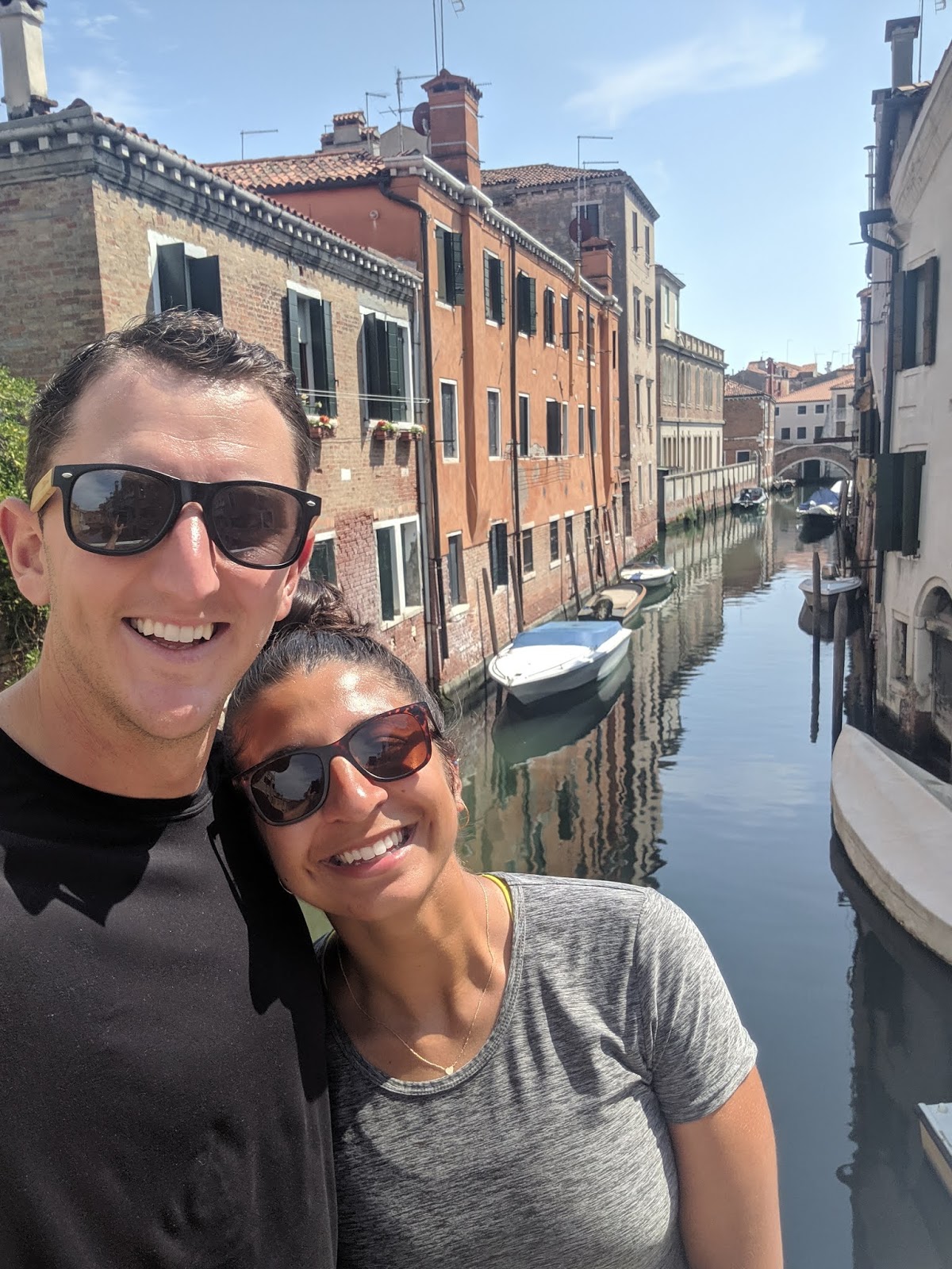 We did a lot of walking in Venice, it’s either that or taking a water taxi everywhere since they don’t have any cars. Water taxis are usually pretty expensive and we have two legs that can get us anywhere for free so we took that option. We tried to use Google maps and most of the time it was pretty accurate, but Venice is comprised of hundreds of small winding streets and alleyways so it is VERY easy to get lost or take a wrong turn (we did a few times because of my navigation). After some coercion I was even able to get Scott to go on a gondola ride. At the time of our ride the grand canal was closed, which I was actually thankful for in the end because it was quiet and very picturesque. I really enjoyed everything about Venice minus our last day…