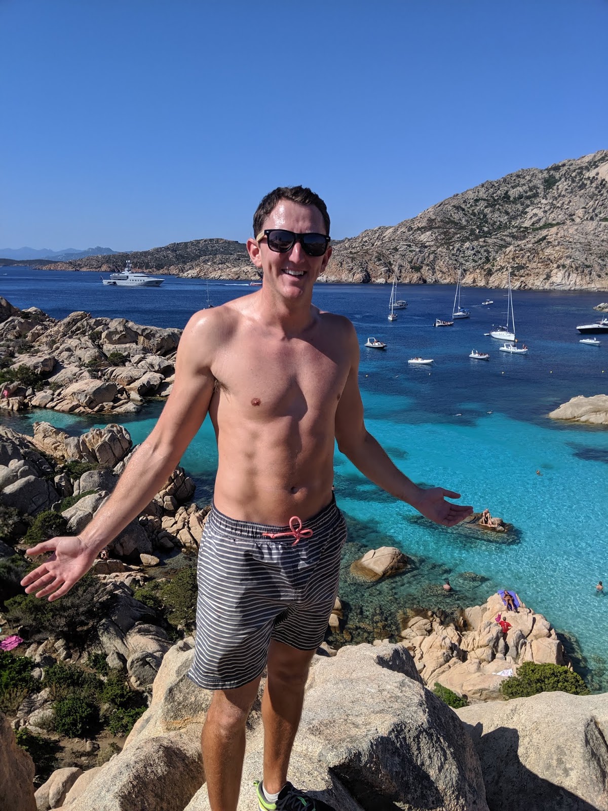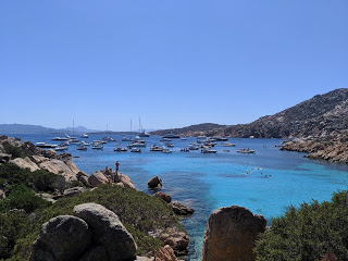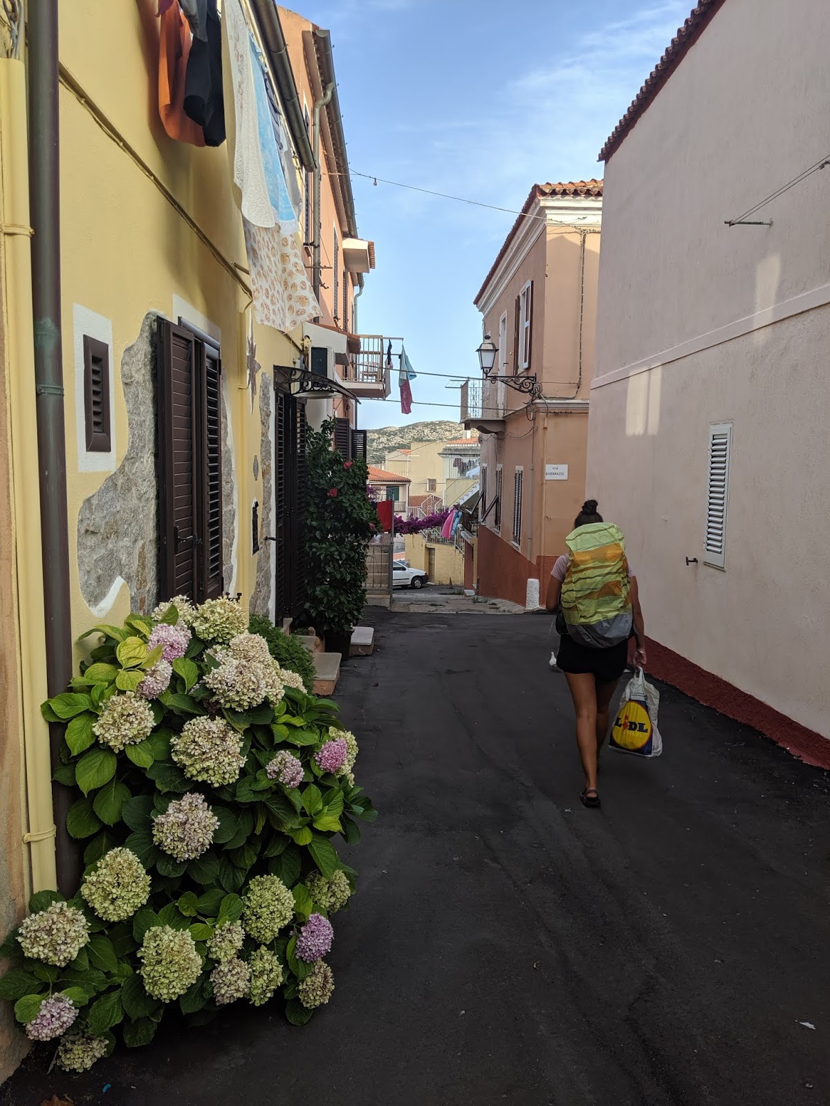 After a pretty harmless day of travel (our last few jaunts have been a bit of a nightmare) we arrived by ferry to a very small island, La Maddalena, which is just off the northern coast of Italy’s biggest island Sardinia. Our order of travel was fly Naples to Olbia, drive from Olbia to the port of Palua, and take the ferry to La Maddalena. Once we parked our rental car we walked down into the old city of La Maddalena. Our air bnb was conveniently located within the city (usually our places are just outside of town). The air bnb was in a multi-level apartment with a common cooking space, our own bathroom and room, and several other guests with similar living situations. Each morning we were greeted by our host with fresh breakfast, the best we’ve had thus far, and his advice on what we should do each day.
