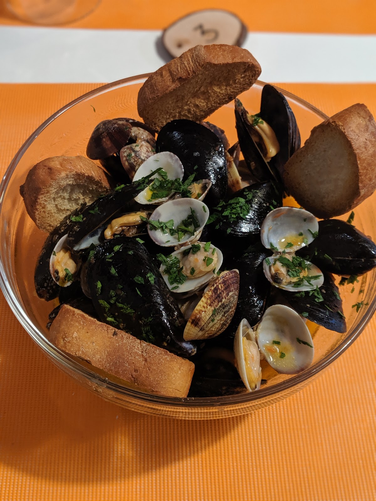 After our day out we contemplated where we should eat our last meal in our favorite place thus far, but ultimately we decided to go back to Locanda Guarre since our first night was so good there. The starters were the same, but we added on clams and muscles steamed in white wine, for dinner I had caico de pepe (cheesy pasta) and Scott had clay pot cooked prawns. We finished the evening with some gelato and walk around the city. It was perfect.