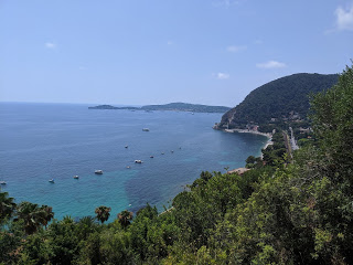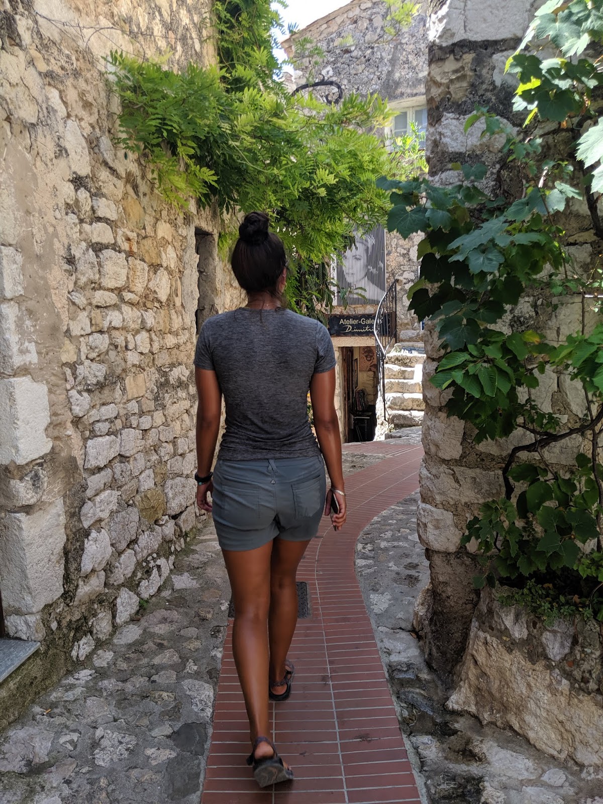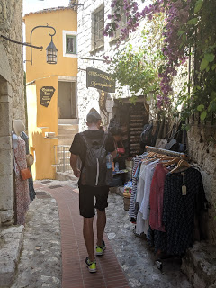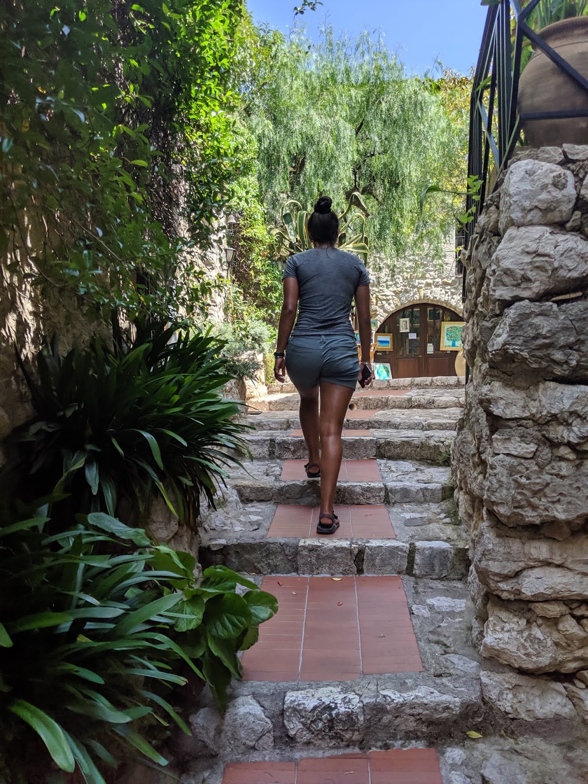We took a local bus to a small village called Eze. But no, the bus didn’t take you to the village, it took you to the bottom of the cliff and you had to hike uphill for an hour in the heat of the day to get to the village. It was our fault for the time of day we picked, but we had no choice. Scott promised me amazing views at the top so I grumpily climbed up the mountain.