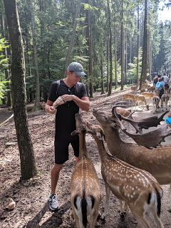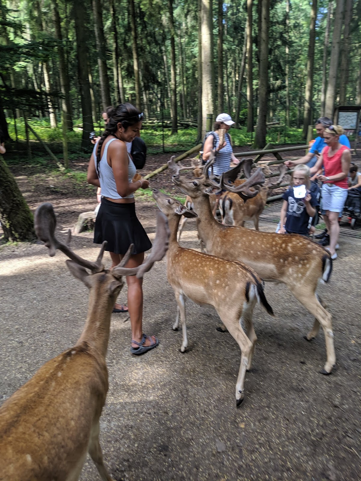 Our time in Munich was short, so we tried to pack in as much as possible. The next two days was all about food and sightseeing, but mostly food. We woke up early and took the train to a town outside of Munich to go to the Wildlife Park. I have been desperately missing everyday interactions with dogs and such, so I thought this would be the best way to get some animal time in. Scott was a bit hesitant at first, but it turned out to be a hilariously good time. We got to purchased food at the beginning of the park to feed to the animals as we passed by. It was set up like a giant forest with some animals in enclosures, and others (deer) roaming about. The deer were fearless, but sweet, Scott got his bag of food nabbed from him by a deer, which was hilarious. We even brought carrots to feed the horses. It was a good break from the city.