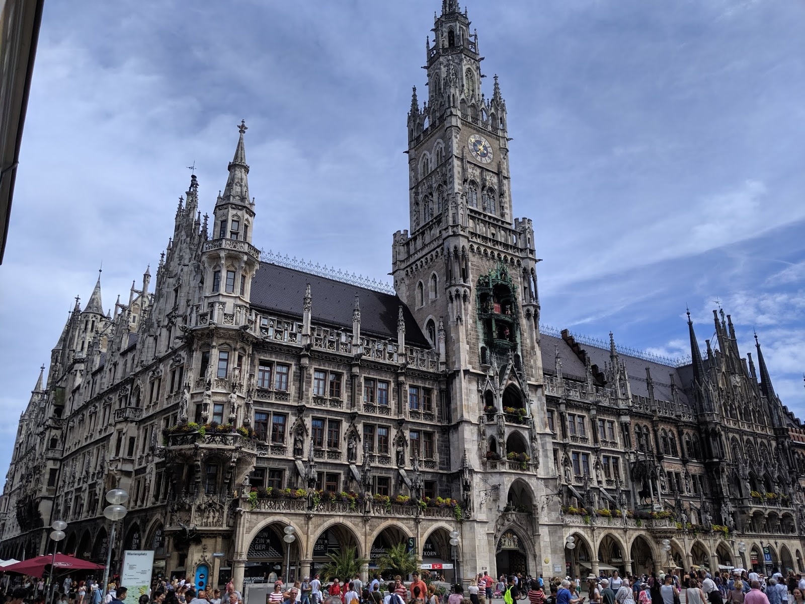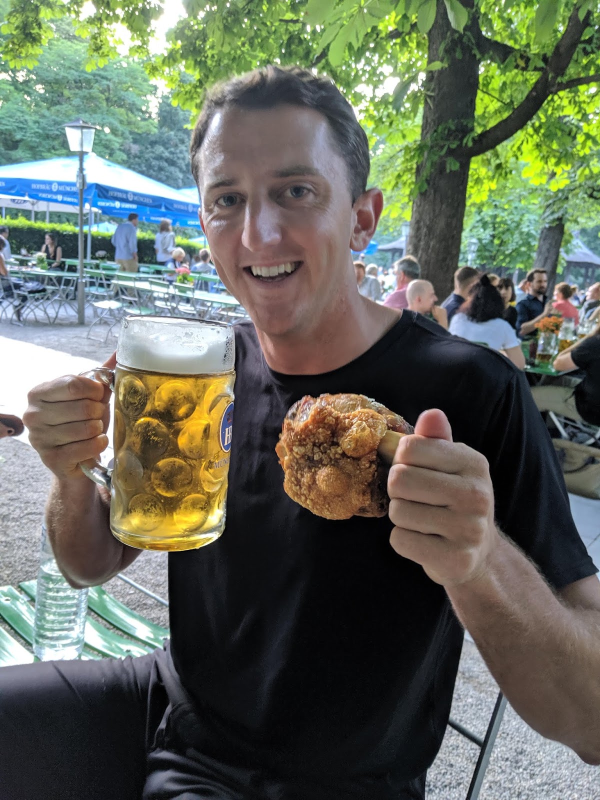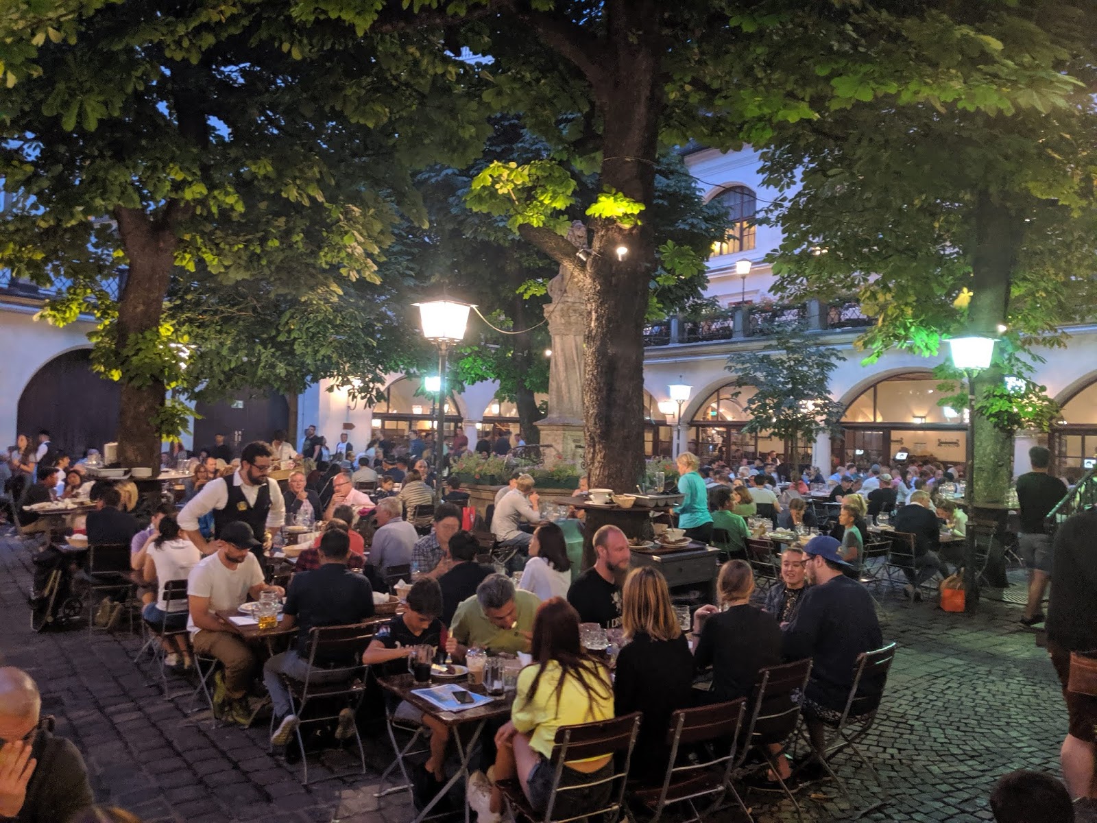 We dropped our bags at our air bnb and searched for our dinner destination. As we walked through our part of the city we took note of how good the public transportation was. Munich has an underground, trains, street cars, and buses, making it incredibly accessible to get anywhere with little hassle. Because we were in Germany we took advantage of the beer gardens every chance we could get. The first one we went to that first evening was an outdoor garden in the middle of a giant park that had rivers running through it. I’m not sure what the actual name of the beer garden was, but most call it the Chinese beer garden because it as a giant Chinese tower in the middle of the outdoor seating and food booths.