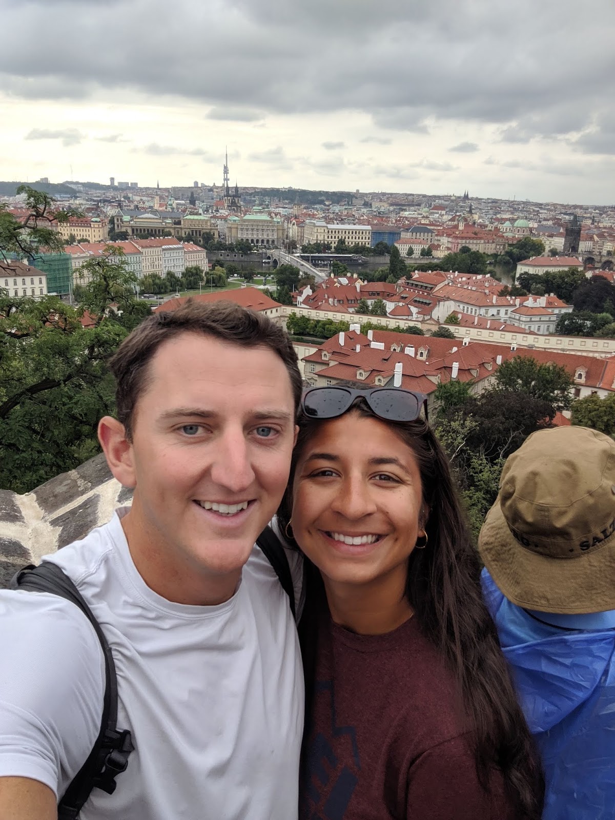 We were still pretty tired from our non-stop travel and the weather was drizzly on our last day in Prague so we tried to do a little sight-seeing but kept it easy going. The largest castle grounds in Europe are found in Prague so we took the tram to the castle and walked around a bit. The entirity of the land was filled with flower gardens, apartments where people still reside, a church, clock tower, and massive castle tower in the center. We could tell that the castle had been well taken care of and refurbished frequently, as with most of the architecture in Prague.