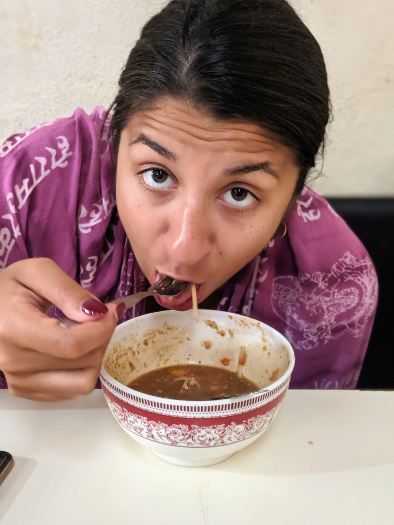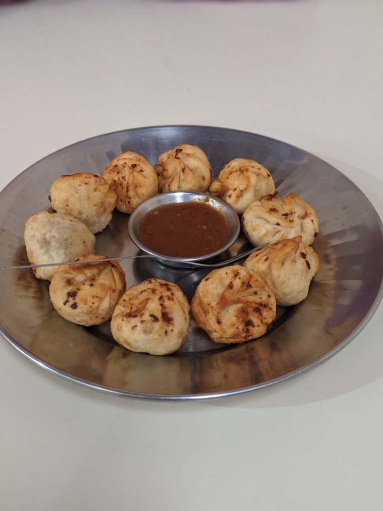 For dinner, we settled for one of the only shops we could find that was open, I’d give you the name but honestly, I couldn’t find it on Google and it wasn’t listed on the shop. They had great traditional Momos and Thukpa (savory noodle soup) and were where the second main bus stop in Kathmandu is. That’s about as descriptive as I can get about location!