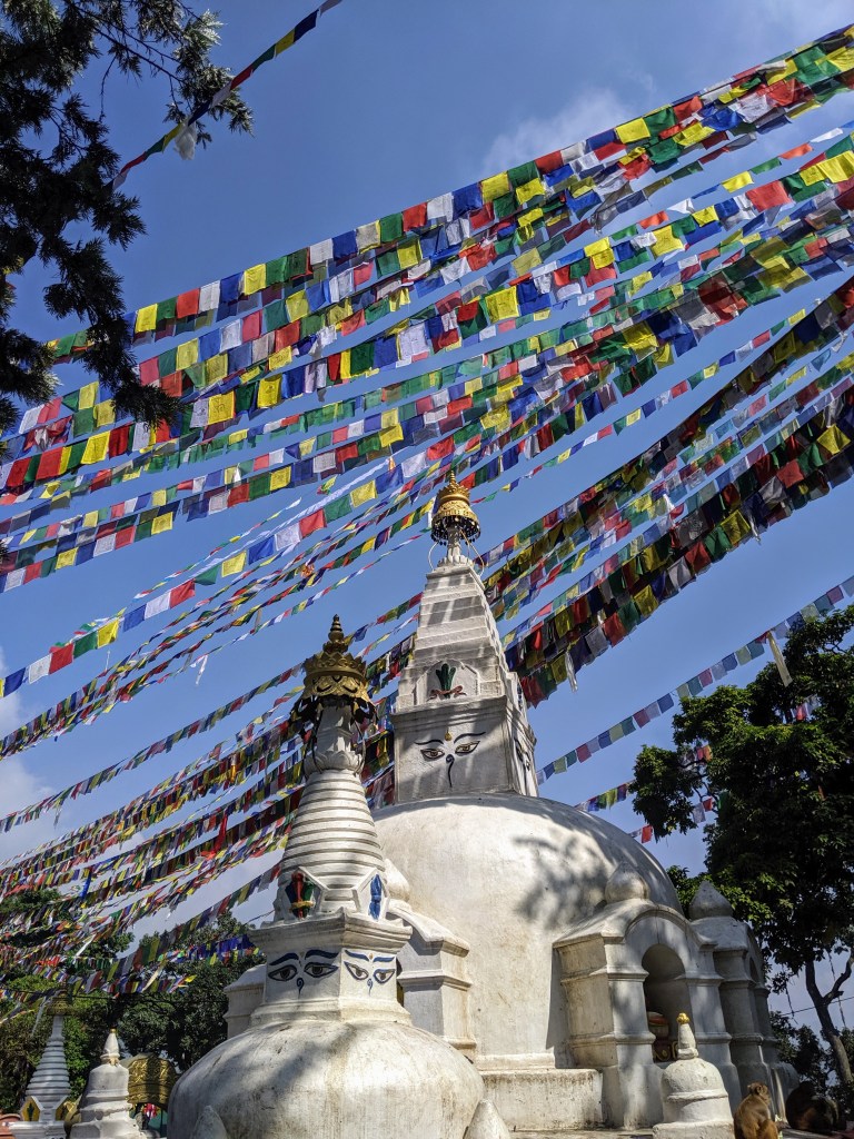 A few more things to note about Nepal in general. It is by far one of the poorest countries we have been to, the dollar is incredibly strong here and it will have been the cheapest place we go on this whole trip. We were told that the government is incredibly corrupt and that power outages happen often. The water is absolutely not safe to drink, and you should take caution when eating street food (though we still do, always try to check for sanitation and have hand sanitizer handy). Pollution in Kathmandu and a lot of the lower lying places in Nepal is VERY bad. Most people you will see wearing masks covering their nose and mouth, or attempting to wrap shawls over their faces, this also presents a lot of smog and unfortunately makes it quite difficult to see the Himalayas. Fortunately, on our flight in we were able to see these mountains, as well as in Pokhara. There is also a lot of trash pretty much everywhere, but what made us the saddest was the rivers, which had been pretty much overtaken by trash. Regardless of this all, they are trying to make a change. The people are so friendly, and the dogs look much more well kept than in India (we still gave them biscuits of course).
