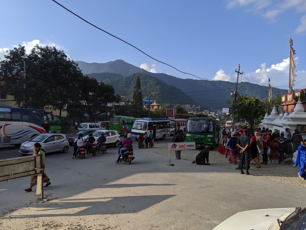 The rest of our time in Kathmandu was spent cuddling our hosts rescue pups and getting ready for our long journey to Pokhara. Rose was kind enough to book our bus tickets and walk us to the area where they pick up. You can also fly to Pokhara from Kathmandu for about $50 a person, but when the bus ride is only $8, we thought we could endure that to save some money and hopefully spend it on excursions in other places. We were incredibly thankful that Rose walked with us and waited to make sure we got on the right bus because basically the system in Nepal is the bus drives through the city, men hanging out the door of the bus yell as they’re passing a “stop” the location. It’s completely informal, much like the rest of Nepal. Rose flagged down our bus, and off we went on our nine-hour journey (a flight is 35 minutes, big eye-roll here). We will opt for the flight next time.