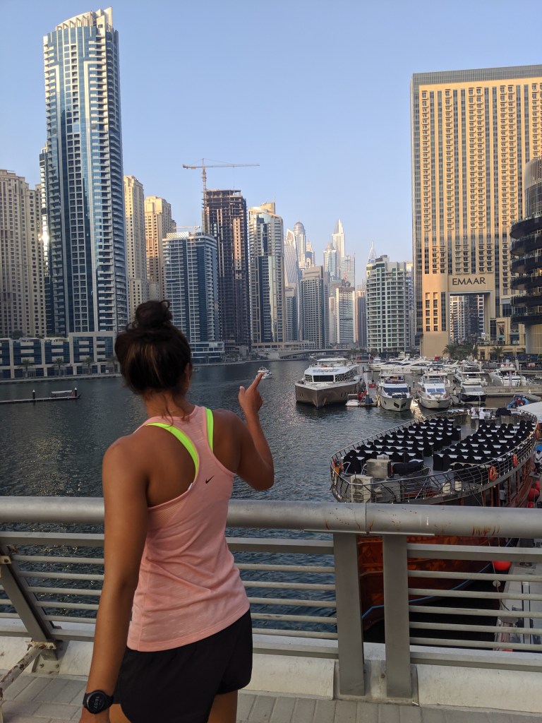Our air bnb was in a tower of an apartment/hotel minutes away from the beach. We were staying with a Chinese family who had been living in Dubai for just a year. From the home we were able to access the gym, three pools, and a grocery store within the complex. There were also plenty of restaurants and shops at the bottom floors of the complex leading toward the beach. The air bnb was conveniently located close to the beach, but also close to the metro. We got to walk across the bridge over the man-made river every time we wanted to go on the metro, a good excuse for a pretty picture too!