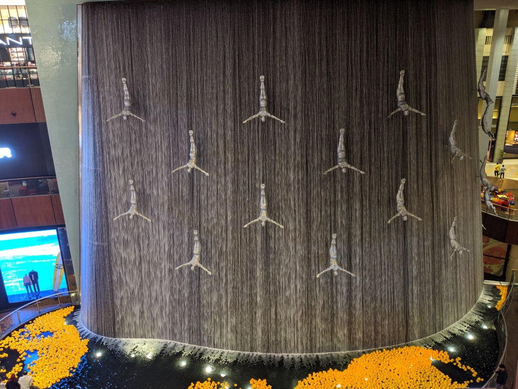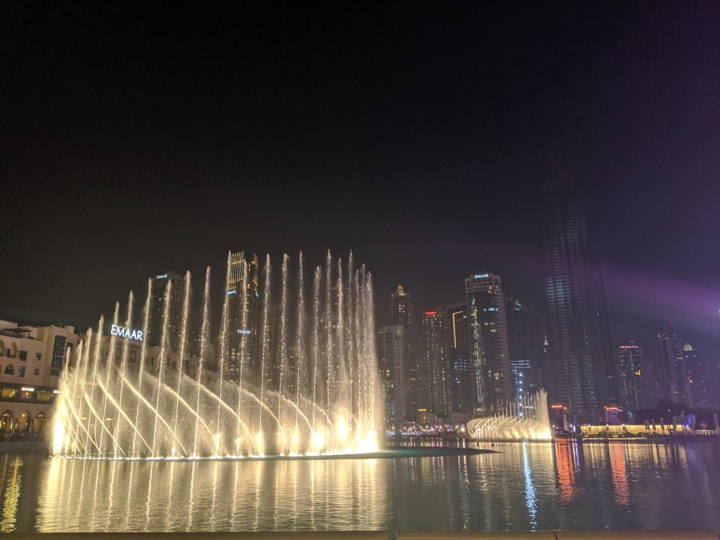 We thought that Mall of the Emirates was nice, but then we experienced Dubai Mall. To start the mall stands at the bottom of the Burj Khalifa, the tallest building in the world at 2723 feet (830m). We went at night so the whole building was lit up, advertisements and twinkling lights flashing across its enormity. At the base of the Burj and the mall is a plaza with a large fountain show every half hour from 7pm on. The fountains are accompanied by traditional music, and a light show projected from the Burj. It basically feels like Disney World and the Bellagio for adults.