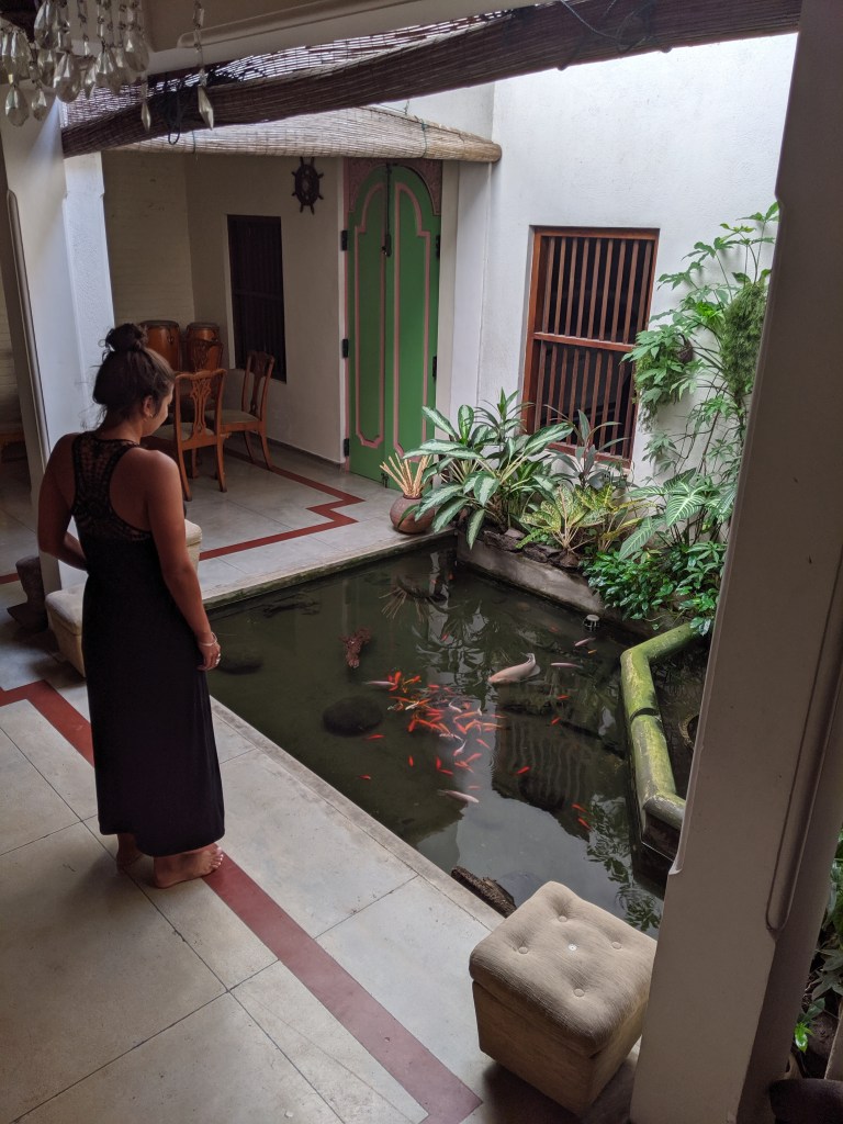 The Air bnb was actually much more charming than we presumed. It was off the main street in a little alley and our host guided us in. His place was massive, and he greeted us with famous Sri Lankan tea. At the bottom level of his house where we sipped on tea there was a large open room with a koi pond to the side. Above the koi pond was open air through the two-story house, so when it rained it went directly into the pond. A very cool feature, but maybe not the most practical during monsoon season.
