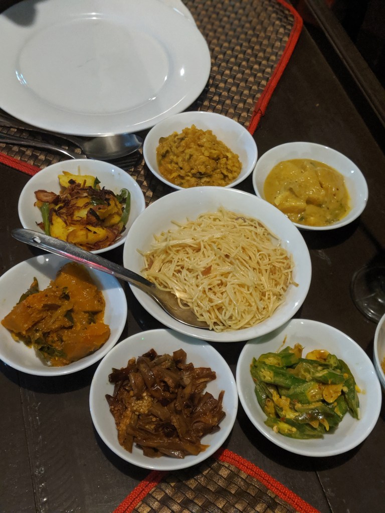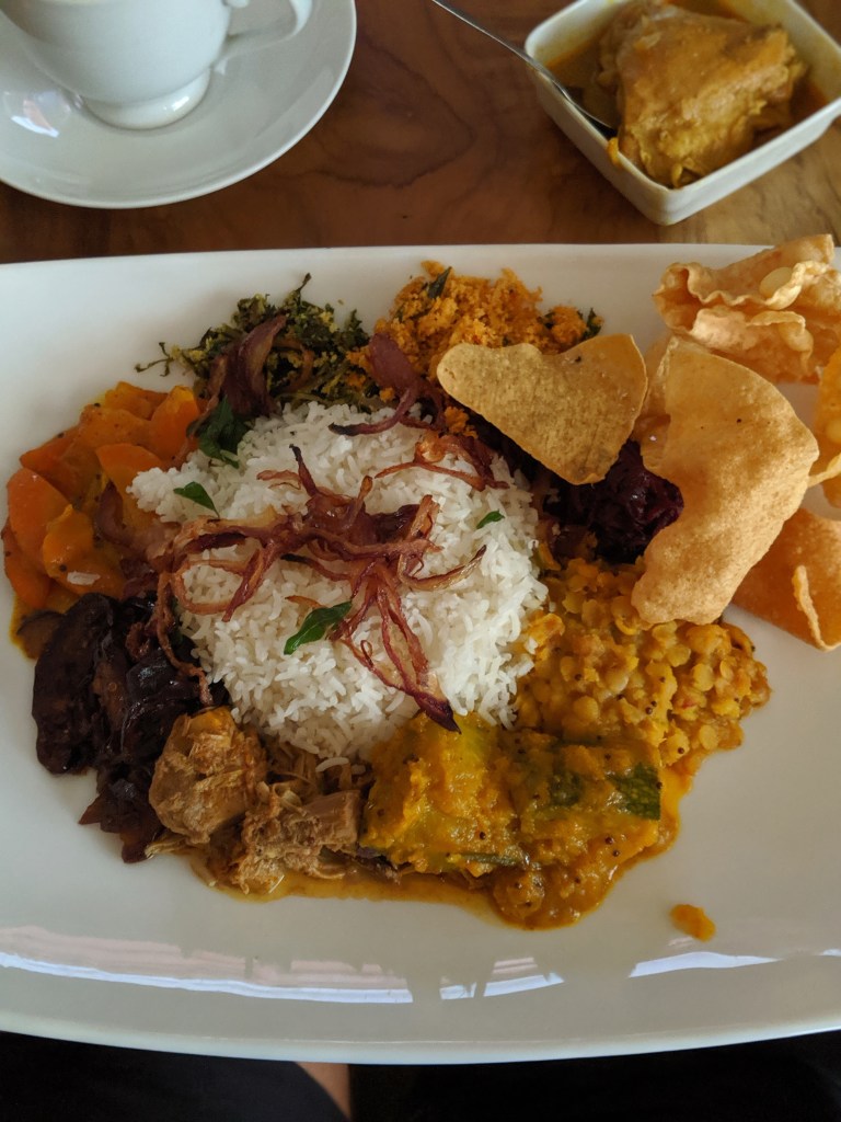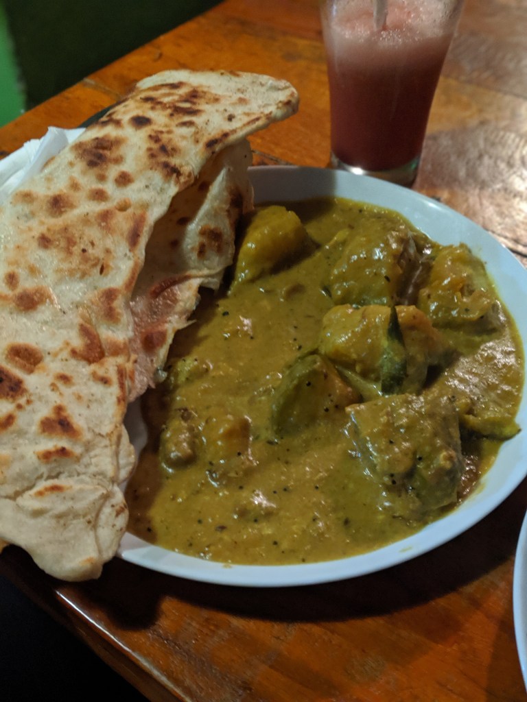 The dinner was fantastic and the sever was so kind. Instead of trying to take all our money he even told us the portions were large and suggested we downscale our order, thank goodness because we were bursting after the meal. We ate tempura veggies, roti with pumpkin curry (Sri Lanka is #1 for roti thus far), and black pepper chicken and rice. It filled the gaping hole in our stomachs after nine hours of travel with just snacks. Scott even made a little pup friend who laid on his lap most of dinner. We quick stepped it back to the Air Bnb on the train tracks in the dark because I feared the potential leopard encounter (of course that is highly unlikely) but your imagination gets the best of you at night in an unfamiliar place.