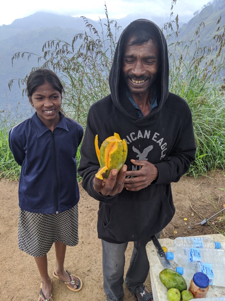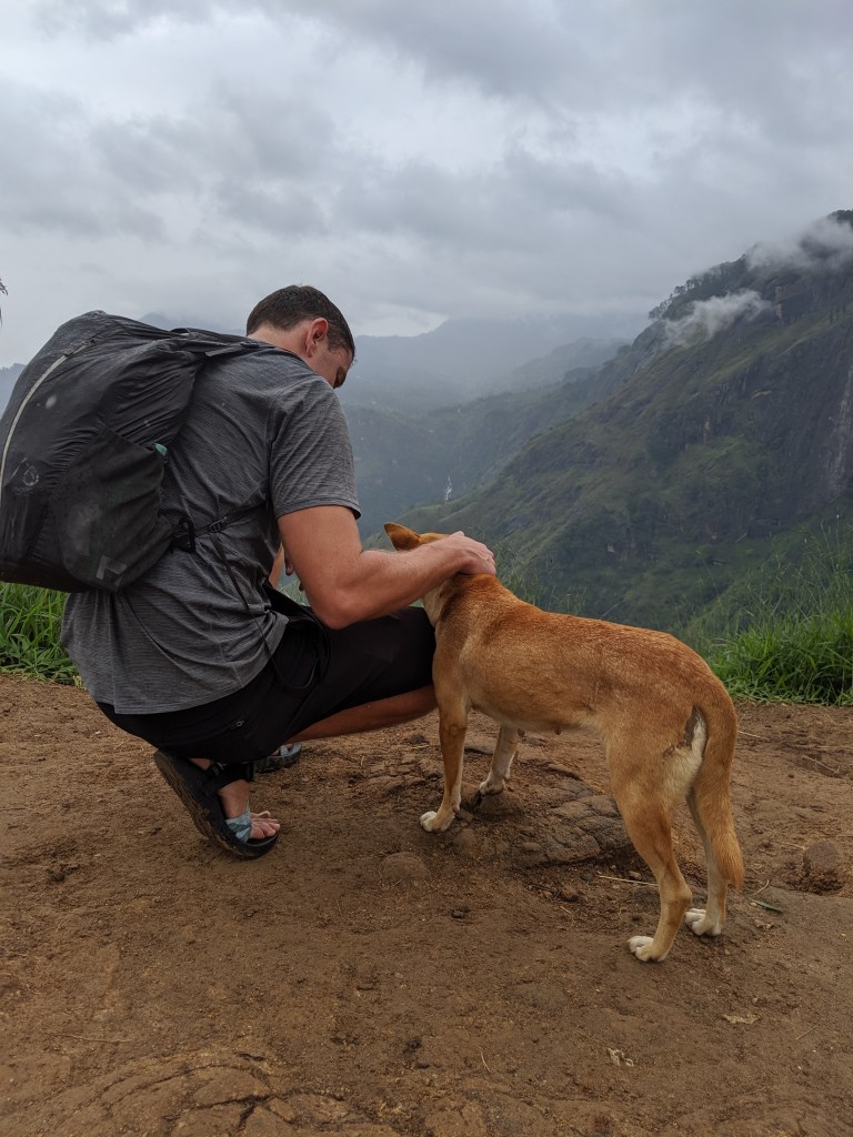 The next spot our driver took us was Little Adam’s peak. Another tourist trap, but something you have to see. The peak is on the property of a massive resort called 98 acres. There was a zipline, infinity pools, gyms, tennis courts, the whole shebang. We later looked up the price for the resort… $500 USD a night, in Sri Lanka?! We were pretty happy with our beautiful $20 a night cabana after seeing those prices. We hiked up to the top of the peak, met a few pups, Scott got a mango from a man and his daughter at the top, and took some pictures. The following day we were going to hike Ella rock, which we could see from little Adam’s peak, it looked a lot more challenging.