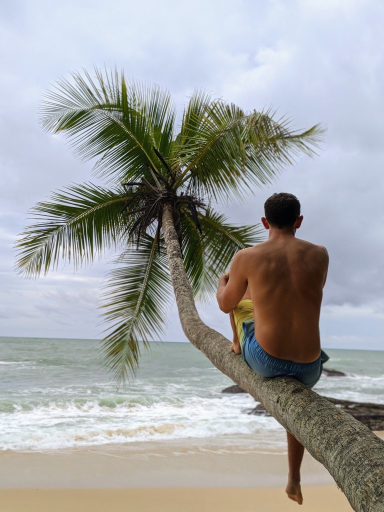 Silence Beach was named that for a reason. When we arrived it was like we had our own personal beach. There was a security guard and a few stray pups, but other than that, it was just Scott and I on one of the most beautiful beaches we had ever seen. The weather had let up for just an hour so we took advantage of getting lots of pictures and walking along the waves. Our host told us it wasn’t much of a swimming beach because, “the waves are like washing machine,” as he would say. It didn’t matter though, there was a swing out over the water, soft sand, and a downed palm tree leading out into the sea that you could climb on. Perfection. We spent all the time we could here before another storm rolled in and then it was back to the bnb for dinner.