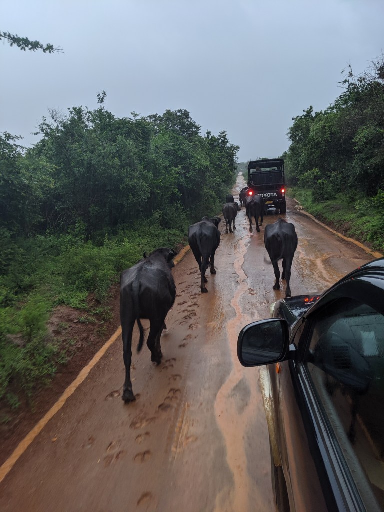 Once in the park our tour guide explained that the park is known for their leopards, but also contains elephants, water buffalo, birds, alligators, deer, and other various speicies. The only unfortunate thing about it was that because it was rainy heavily it may be hard to see the lepords beacuse they are “lazy” as our guide would put it. We spent the next few hours bouncing around the muddy park roads chasing to find all of the animals listed above. Scott and my favorite was probably the water buffalo bobbing in the water, but the elephants are always amazing too. We were even lucky enough to see a leopard hunting water buffalo from afar. It was an unreal experience, but would’ve been even better without the rain (at least it’s warm when it rains here).