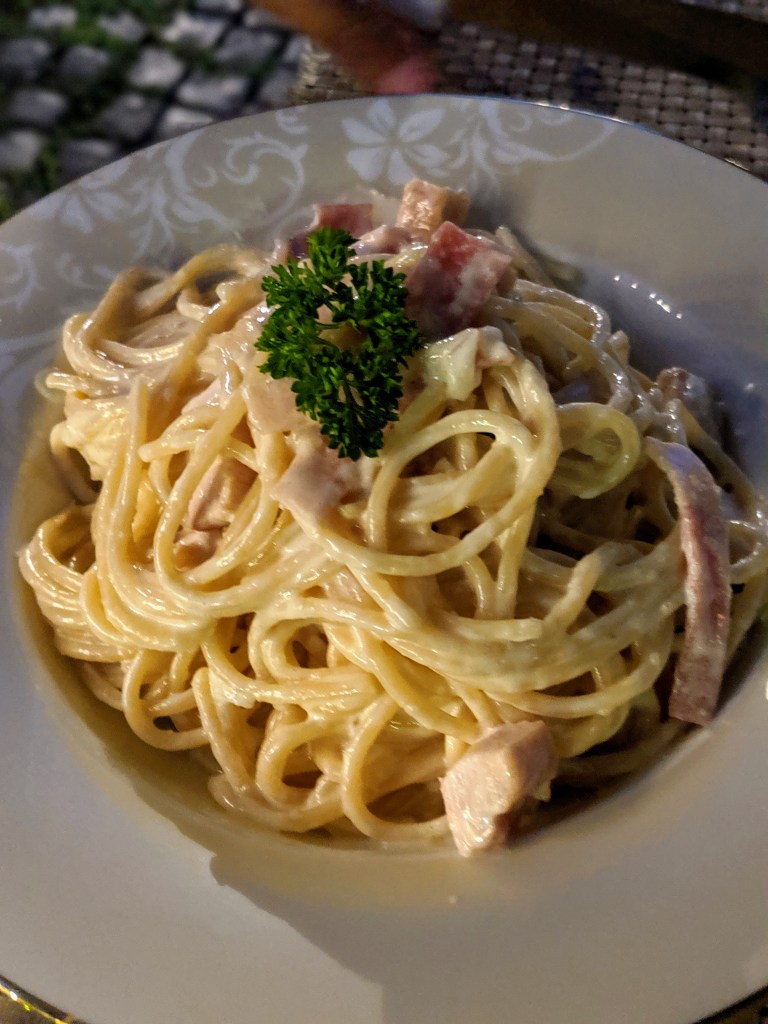All of our hosts told us to expect rain in the evening and overall stormy weather. They apologized profusely each time, but we weren’t bothered by some rain. We were used to it at this point. After we dropped our bags, we checked out the ocean and then headed into town for dinner. Lately, we’ve been in a mood for Western food. You never realize how much you miss just basic things, like pasta, until you’re away from home (or Europe for that matter). Scott found a place in town called The Dutchman’s Street, which specialized in western food, but also had some local food. We were craving pasta, so we order French fries and two big bowls of cheesy pasta. It definitely hit the spot, but we forgot how filling that type of food was; we struggled to finish.