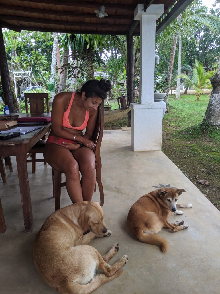 When we arrived at Deep Blue Sri Lankan rentals it was a bit gray out, but it didn’t mask the beauty of the property. It was a beautiful compound with several villas, rooms, an open kitchen, common area, open access to the ocean, and the best part a pool! Actually, the best part was that there were three sweet pups that we bonded with instantly. We didn’t know the names, or if they even had names, but they were so sweet and just wanted a good belly rub and some treats. Another plus to this place was that we were there during off season, so we literally had the whole property to ourselves, except for one night. It was like having our own personal pool and villa.