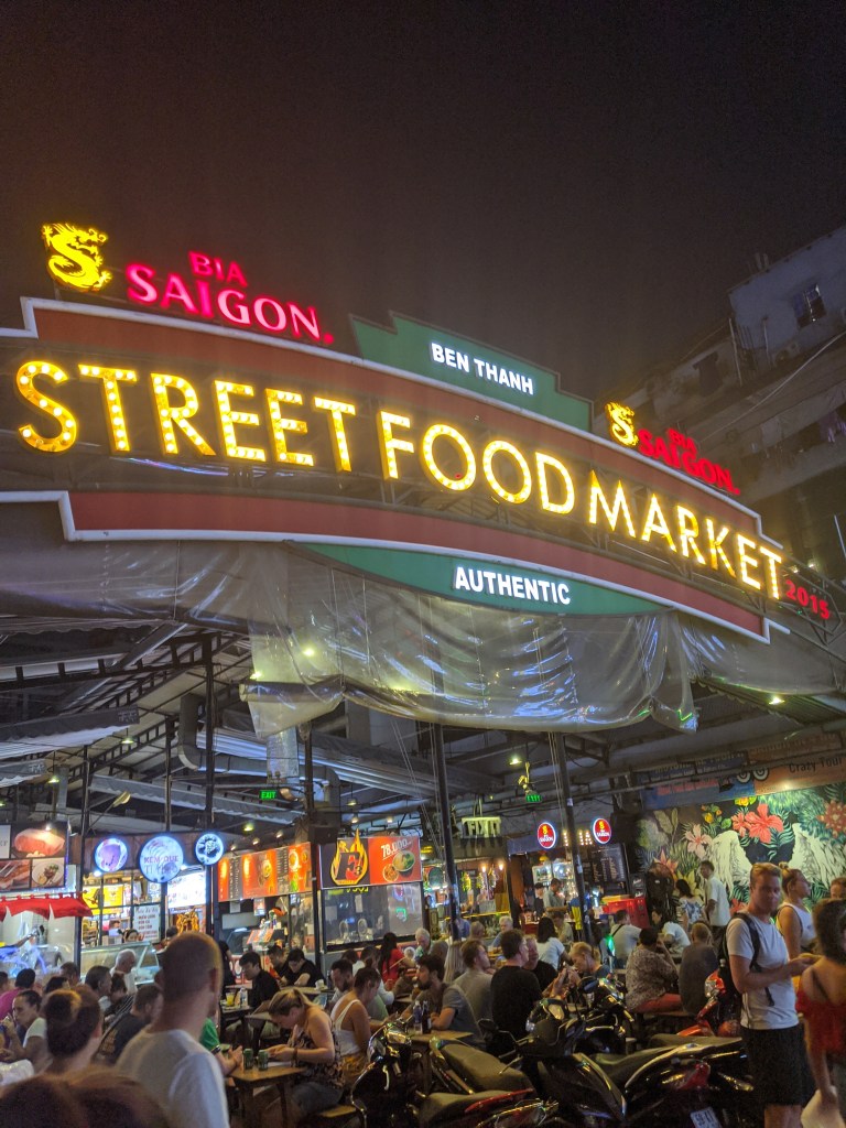The air bnb was in a very central part of the city, right next to a food market. That was marketed toward tourist, a bit over-priced, but the food was good. Another market, half a block down, Ben Thanh market was open day and night and amassed hundreds of people. During the nighttime hundreds of carts were pushed out from the alleys and on to the street for a night market that was filled with the standard Asian knock-off goods. There were a few places to eat, but most of them in the market we avoided because they were selling things like turtles and other sea friends that I couldn’t bear to support.
