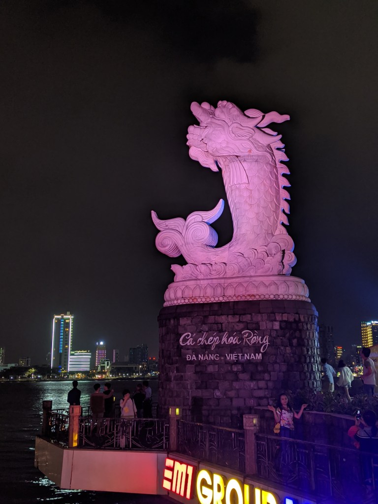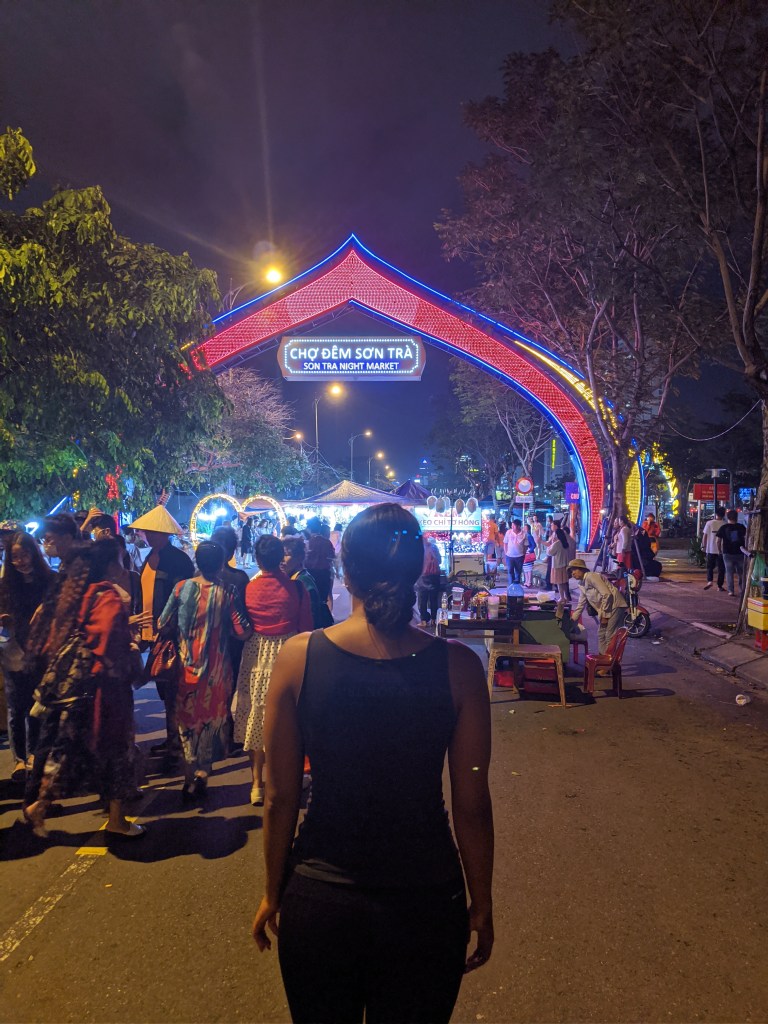 In the early evenings we would walk around Da Nang, check-out night markets (which we all know are basically the same throughout Asia) and maybe get a nice happy hour before deciding on dinner. We did end up checking out a cool brewery called 7 Bridges started by a guy from the states, who happened to go to school in Oregon. The brewery was conveniently placed right next to the dragon bridge, which at night lit up and on weekends “spit” fire. Vietnam has quite a few microbreweries and this one was wonderful, not only did they served really good popcorn with their brews, they had REAL, American tasting pizza. I was in heaven. What more could a girl want: popcorn, pizza? I’m in.