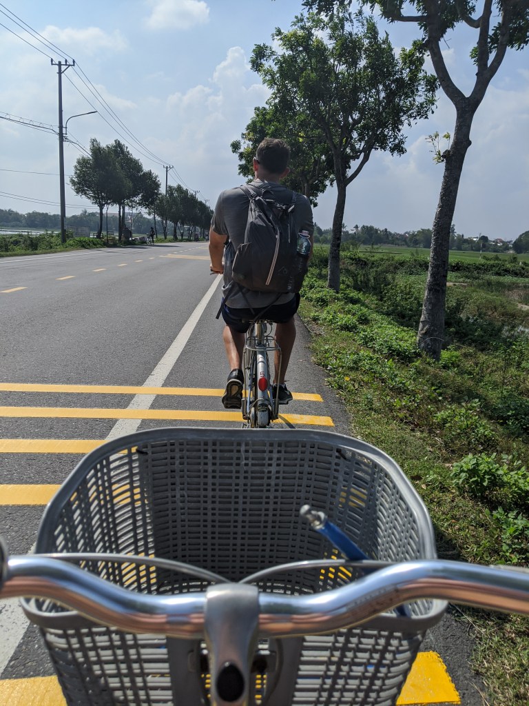 Like all the rest of Vietnam, the weather had been cold and we still hadn’t seen the sun. Fortunately, on one of our last days in Hoi An we saw the sun and took full advantage of it. We borrowed bikes from our hotel and headed down to the beach. It was nice to take in some sunshine, and watch the waves crash while enjoying a cup of tea at a local home stay. The best part was riding bikes through the rice paddy fields to and from the ocean, an experience that you don’t get everyday! Hoi An was definitely our most favorite spot in Vietnam thus far.