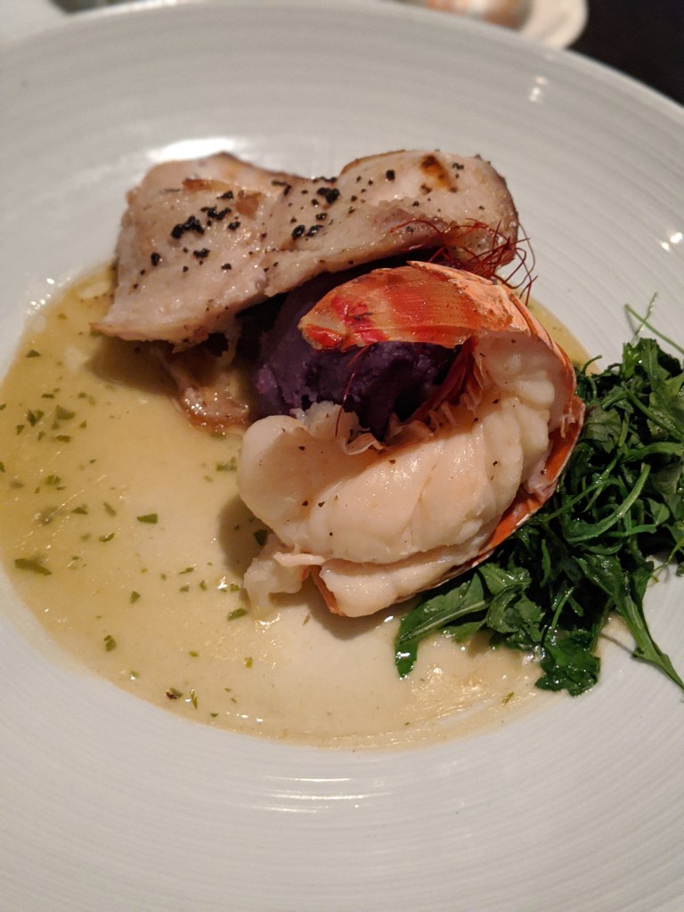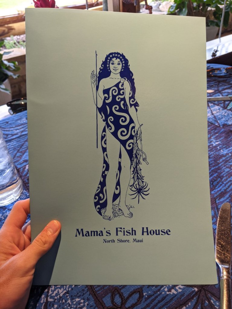 Okay, but here is the real deal, that Scott and I have vowed to eat at every time we go to Maui from now on. A hidden place on the beach, where you MUST get reservations sometimes weeks in advance called Mama’s Fish House. We had heard from several people that it is the place to go, so as a splurge meal we went there. The restaurant has stunning views of the ocean, beautifully decorated interior, and friendly staff abound. But that isn’t the best part. The food is literally to die for. Probably one of the best if not the best restaurants we had ever been to. We did this on the cheap (it is VERY expensive) so no cocktails and appetizers. Luckily they provide fresh bread with sea salt whipped butter, and a small tea cup of soup. Usually, Scott and I will get two different entrees and share each but here it was different. They had their signature dish, fresh fish, stuffed with crab, and topped with a lobster tail, so we both got it! It was incredible, perfectly cooked and flavors you couldn’t believe! If that wasn’t enough, we also got their signature desser to share called the Black Pearl, it’s hard to describe exactly what this thing is, but the presentation says it all (check out the picture). It is safe to say we were on cloud nine after this meal!
