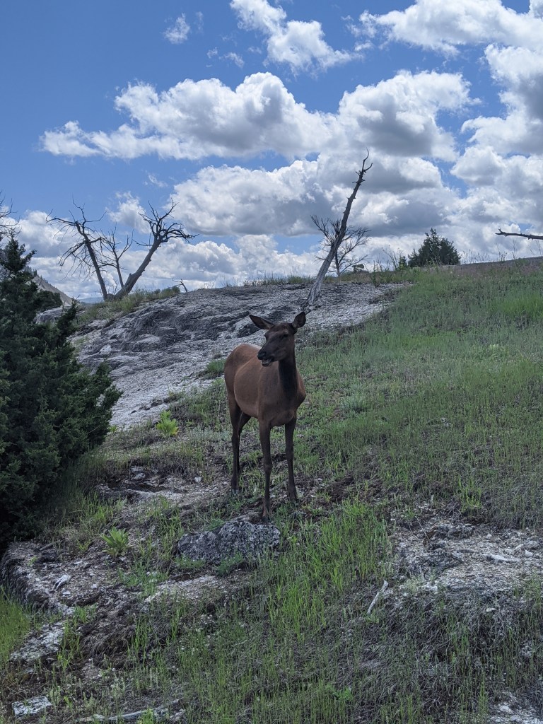 Driving down the rest of the road we had to keep our eyes peeled for wildlife. All Scott wanted was to see a bear. We had yet to see one in the wild together. Though we saw no bears in Yellowstone, we did see plenty of bison and elk roaming around. That was more than enough for me. I did not want to encounter a bear on any of our hikes. Lord knows I wouldn’t have been able to stay calm, and out of all the things we’ve done in the last year, a bear attack is not the way I would want to go.