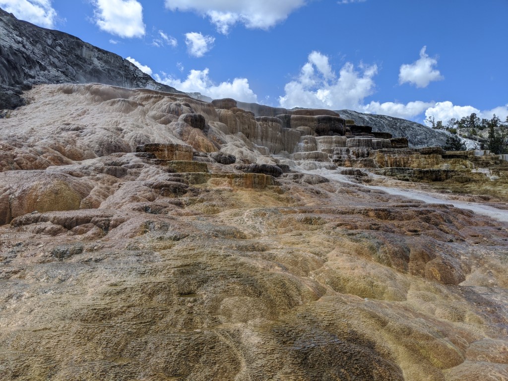 My main goal for Yellowstone was to see Old Faithful. Every hour, within 10 minutes on each side, the geyser goes off. The most spectacular in the park. Scott and I first saw it from the peak of Mystic Falls miles away. Then we got up close and personal. I loved it, Scott didn’t seem too impressed. But remember this is coming from the guy who thought black sand at Craters of the Moon was awesome… After Old Faithful erupted, we walked the upper geyser trail and then headed toward Mammoth Hot Springs.